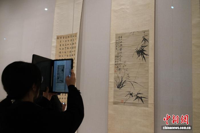 11月11日,不雅寡正在郑板桥《兰竹图》前摄影。中新社记者 曹丹 摄