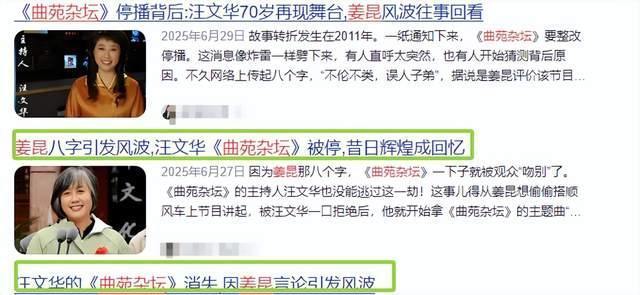 然而节目暂停播放后,汪文采便很少现身,对于这档节指标停播,网传与姜昆有很大的关联。